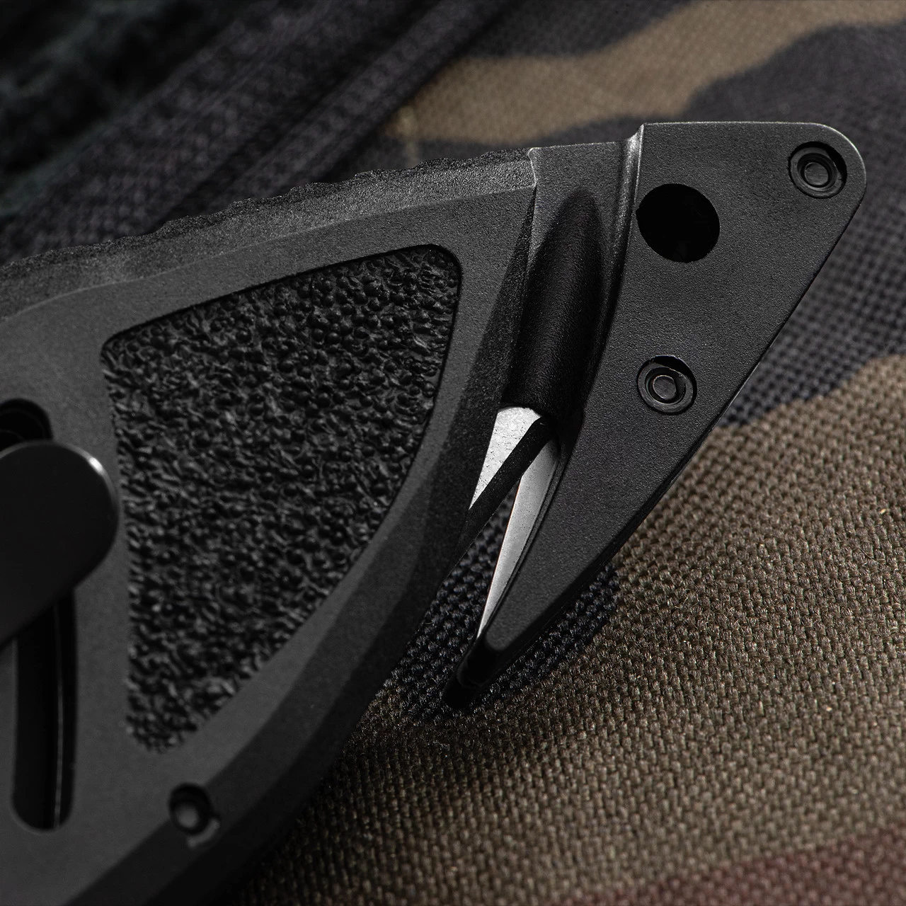 The handle is made from Injection-molded, reinforced nylon with 420J stainless steel liners with a stainless pocket clip attached. The opening mechanism benefits from bronze washers making for a smooth opening. Adding to this already impressive knife is a seatbelt cutter and carbide glass breaker.