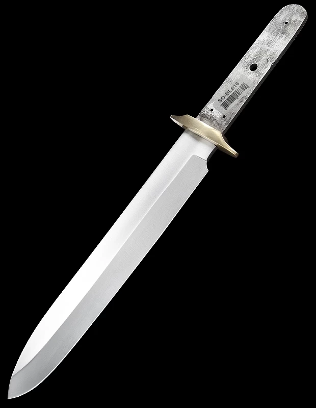 This Camp Knife style blank is ideal for honing your skills as a knife maker. It’s supplied with a brass guard and holed tang, ready for fitting to the handle of your choice. Made from spring steel, this blank will be straightforward to finish.