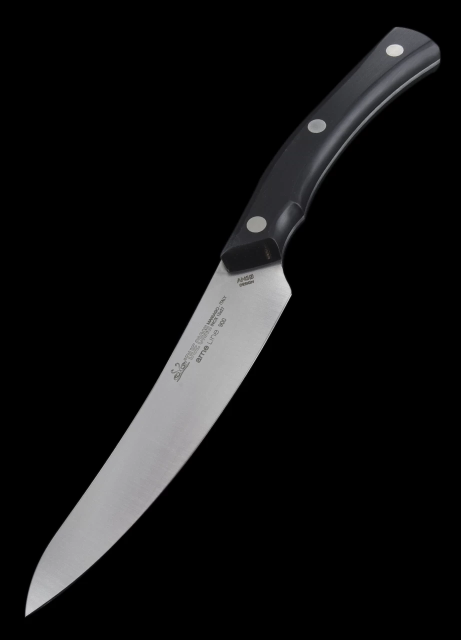 Designed by Jens Ansø the Due Cigni Steak Knife features HPL (High Pressure Laminate) handle scales which are not only comfortable to use but dishwasher safe. The satin finished blade is razor sharp to the tip and heat treated to keep a long lasting edge. It’s a kitchen knife a steak knife that will last forever.