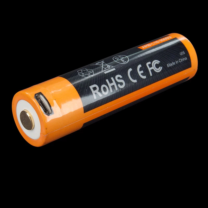 The Fenix ARB-L18-3500U 18650, 3500mAh lithium – ion battery is specifically designed for high intensity led illumination use and is the perfect companion for all current Fenix 18650 powered lights. The 3500U is a highly versatile battery that can be charged in a regular Li-ion charger or, for those customers who already have a charger with Micro USB lead such as a mobile phone charger, the micro USB can be plugged directly into the battery, saving the expense of an additional charger. The Fenix ARB-L18 3500U battery even features its own built-in LED indicators for charging / charged status.