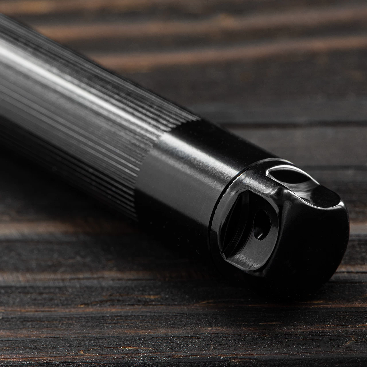 The non-reflective matt-black coated brass gives this pen a real feel of solidity and quality in a tiny package – only 13.5cm open, and 9.5cm closed.