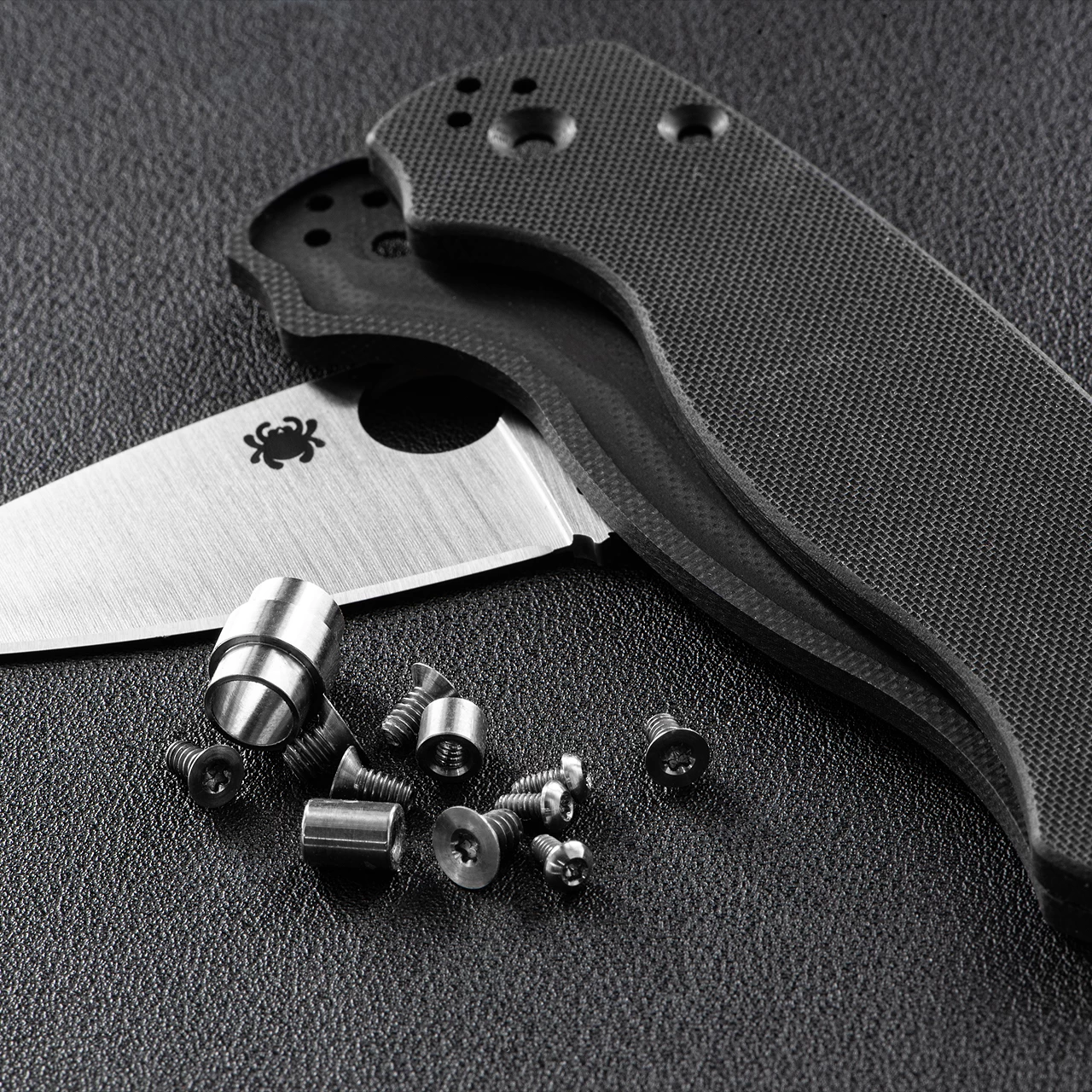 The Flytanium PM2 Titanium Hardware Kit is a set of screws and spacers machined from titanium that are designed as a straight repleacement for the screws and spacers in your existing knife. Simply unscrew your existing plain steel screws, and replace them with these high-end replacements.