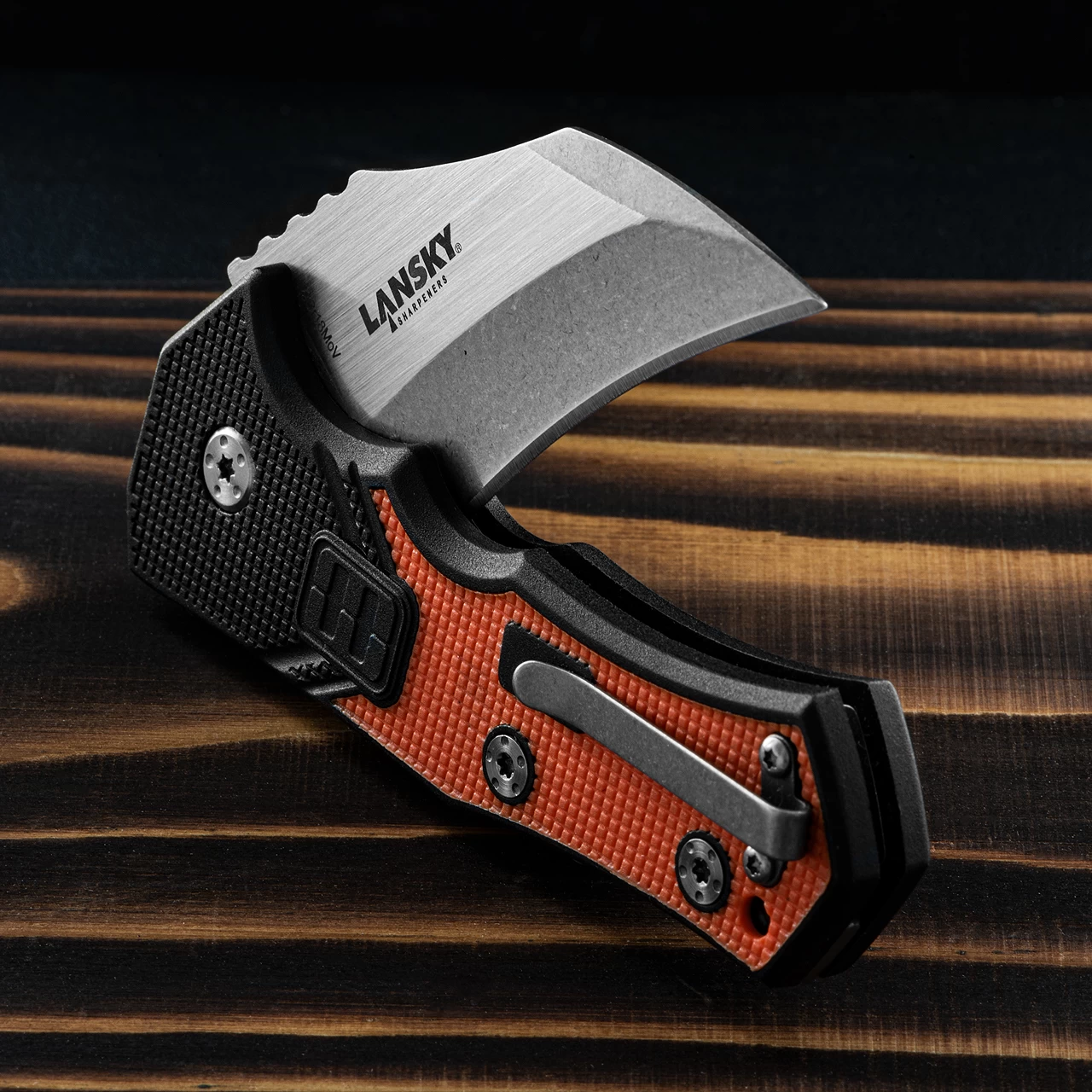 The Lansky Madrock is a slip-joint knife. Blade doesn’t lock, but is instead held by a spring, which allows the blade to fold when a certain level of pressure is applied.