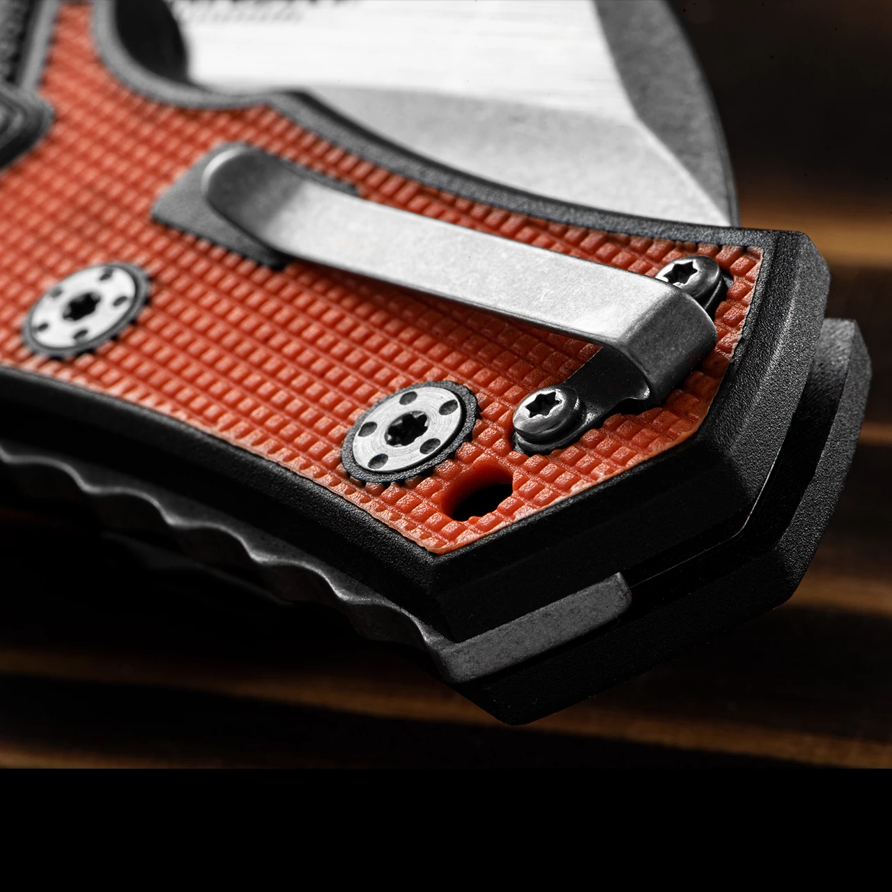 Design upgrades include: same blade length as the original World Legal yet with a shorter overall length and reduced weight for an enhanced everyday carry experience, and an inwardly curving blade. The handle features a low-profile deep pocket clip and a tactile rubberized grip that resists slipping even when wet.