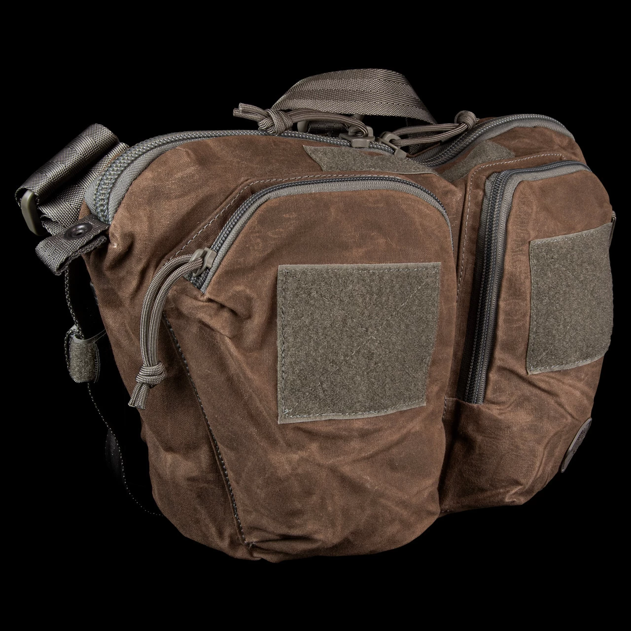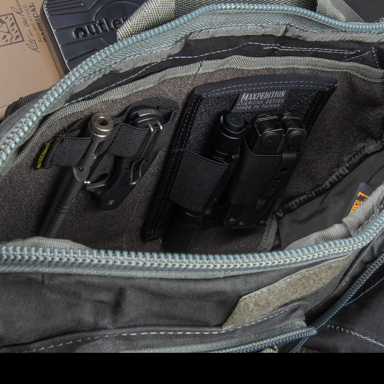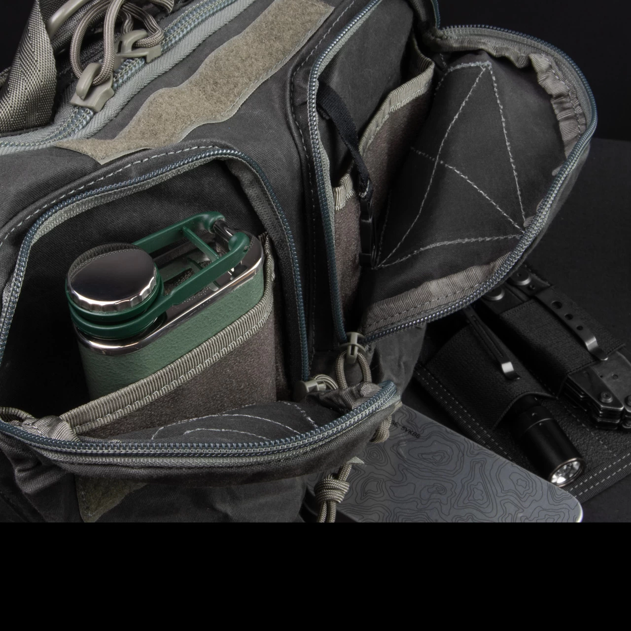 It features a rear padded section with an outer that goes against the body so is comfortable when worn close plus any fragile items will remain undamaged. The main compartment includes two large sleeves and a zippered pocket. The large sleeved area features a hook and loop surface to attach pockets, pouches and loops to get organised. The front exterior includes two zippered pockets with hook and loop surface. Both these pockets are perfect for items you need to get hold of quickly.