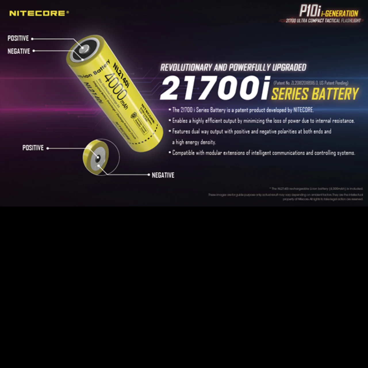 The Nitecore NL2140i 21700 battery is specifically designed for the Nitecore i Series, including the P20i and P10i flashlights. The cell has a capacity of 4000mAh and a maximum continuous discharge of 8A.