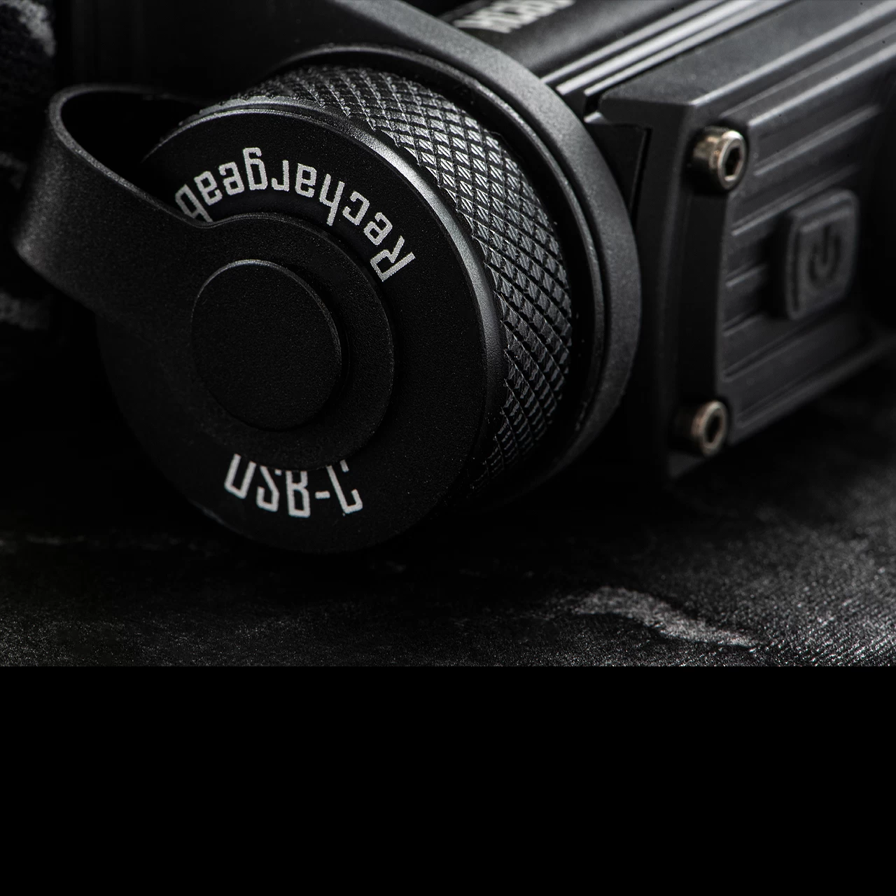 The Nitecore HC60 v2 headlamp has a maximum output of 1,200 lumens from the Osram P9 LED and is powered by 1 x li-ion 18650 battery (included). The light is rechargeable via a concealed USB-C port which is accessed by unscrewing one end of the head torch.