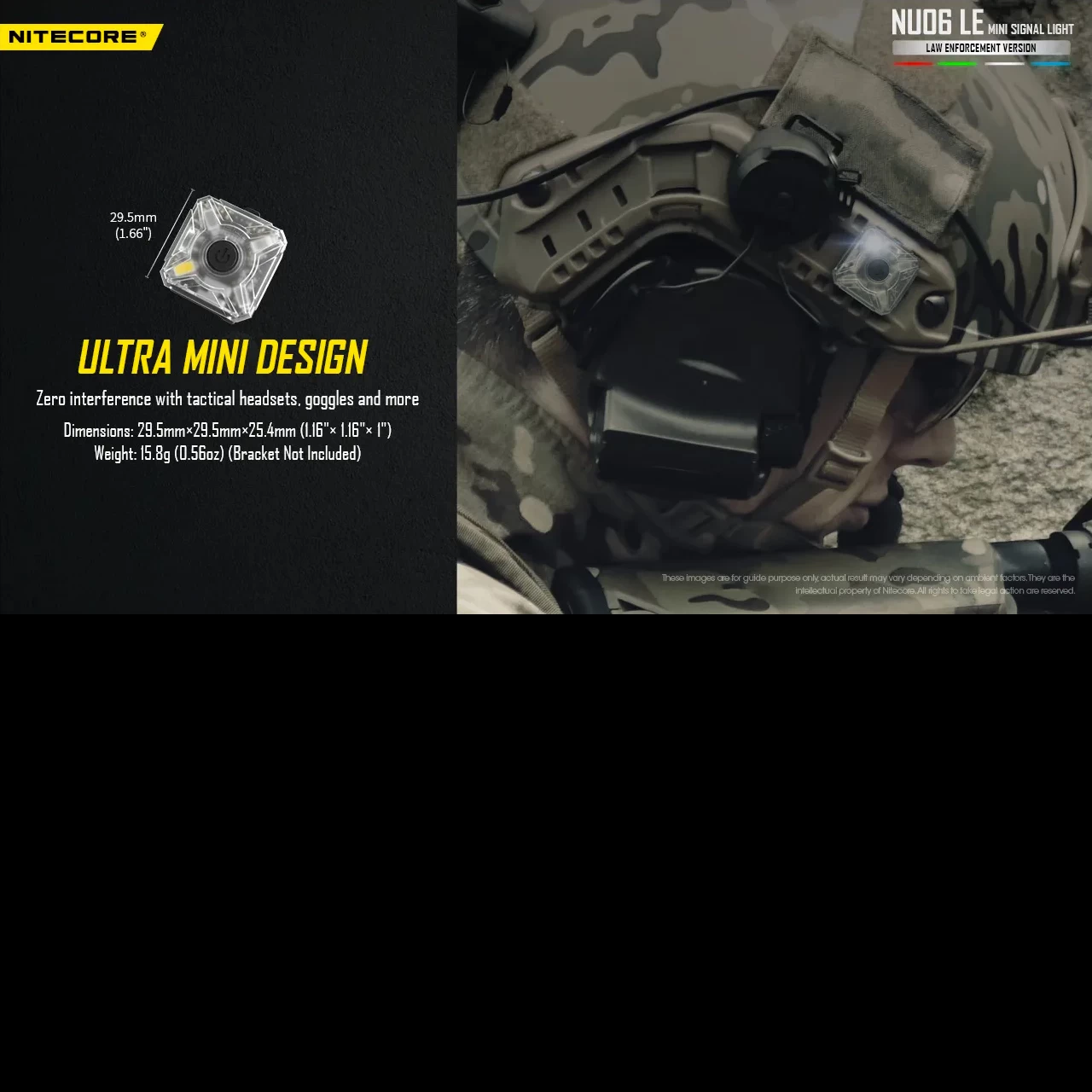 The NU06 LE offers plenty of carry options and comes with a magnetic hook-and-loop bracket, a curved hook-and-loop helmet bracket and a Molle system bracket which can be used with tactical vests and backpacks.
