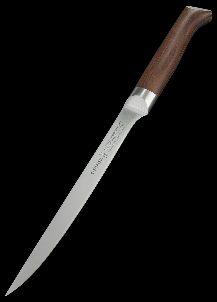 The Opinel Les Forgés 1890 Slim Knife is a fine, flexible, pointed blade. For filleting fish and cutting thin slices.